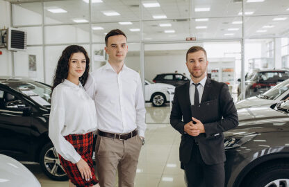Car dealerships typically feature showrooms where the latest models are displayed in a well-lit, aesthetically pleasing environment.